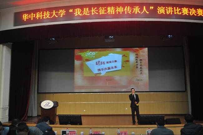 演讲比赛分为主题演讲、诗歌朗诵和即兴演讲三个环节。主题演讲环节,选手们紧扣“我是长征精神传承人”主题,或引经据典,将红军长征故事娓娓道来;或简述自己的不懈奋斗,号召广大青年跟随党去完成实现伟大复兴中国梦的“长征路”;或通过身边的典型,阐述对“追寻红色足迹,弘扬长征精神”的理解,展现当代大学生以实际行动传承长征精神的决心。诗歌朗诵环节,6位选手对《长征魂》进行朗诵,声情并茂,打动人心。即兴演讲环节,选手随机抽取题目,就“雄关漫道真如铁,而今迈步从头越”“不朽长征魂,青年共传承”等题目进行2分钟阐述。最终,杨懿晨、高远、梁宇等3名同学脱颖而出获得一等奖,任文萱等7名同学获得二等奖,李煜淳等7位同学获得三等奖。