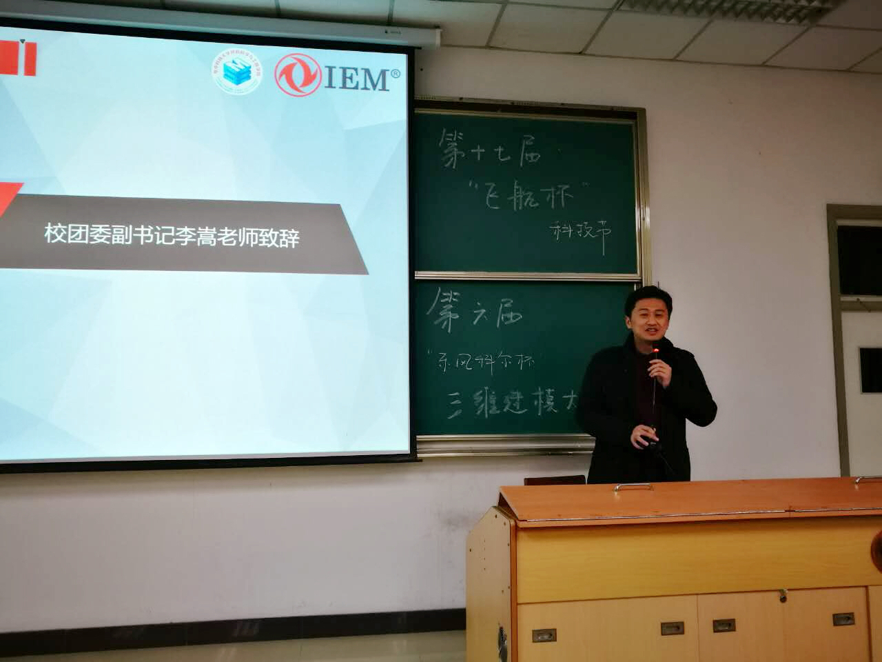 校团委副书记李嵩老师致辞,他赠给大家三个关键词:自主学习、学科交叉、校园开放。作为新一代科学技术人才,我们要在这个平台上学会自主思考、自主创新,与其他院系,其他学校的同学优势互补、共同进步、以求双赢。这个大赛同时要求我们关注模具行业的走向,并注重锻炼自己的实践能力。