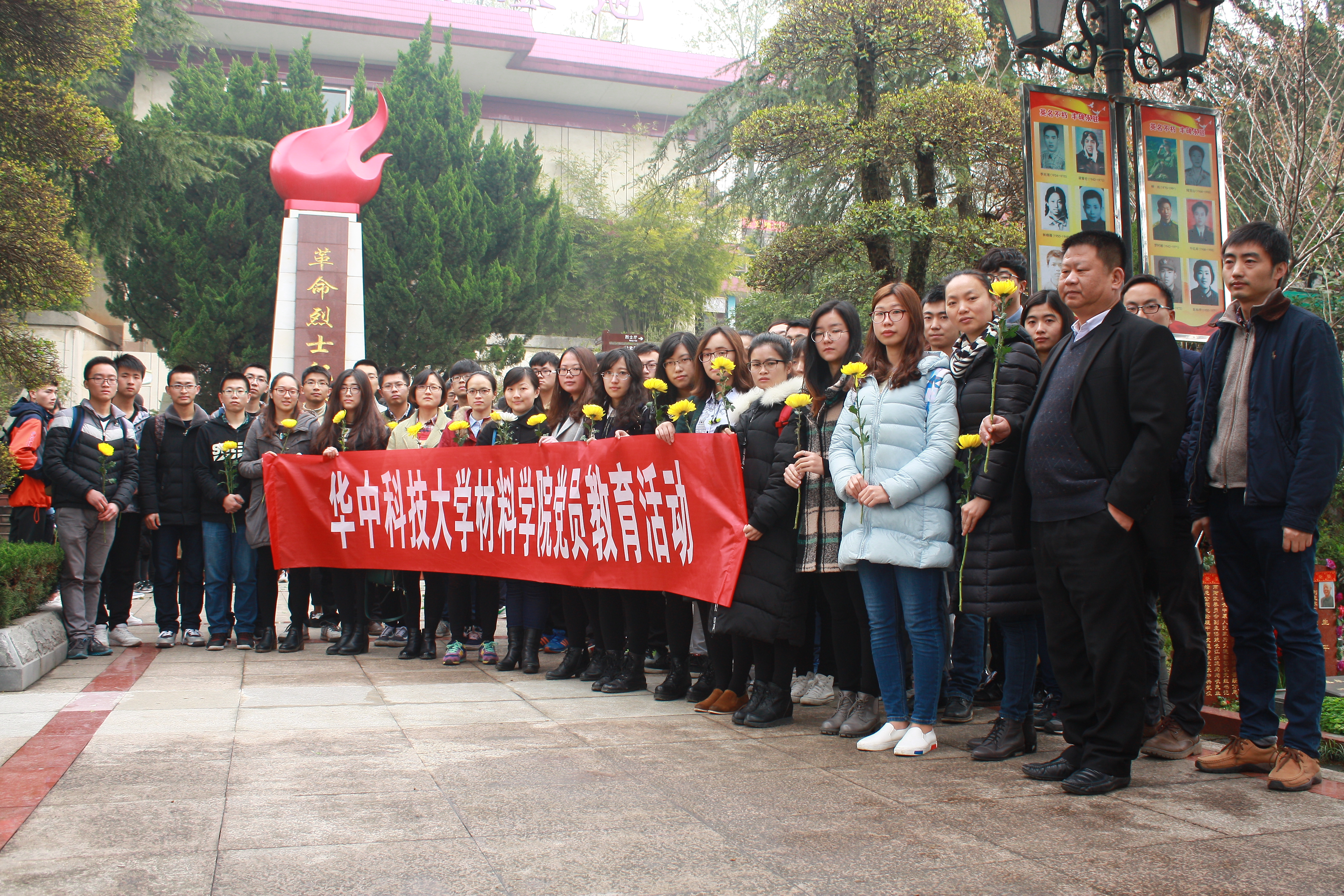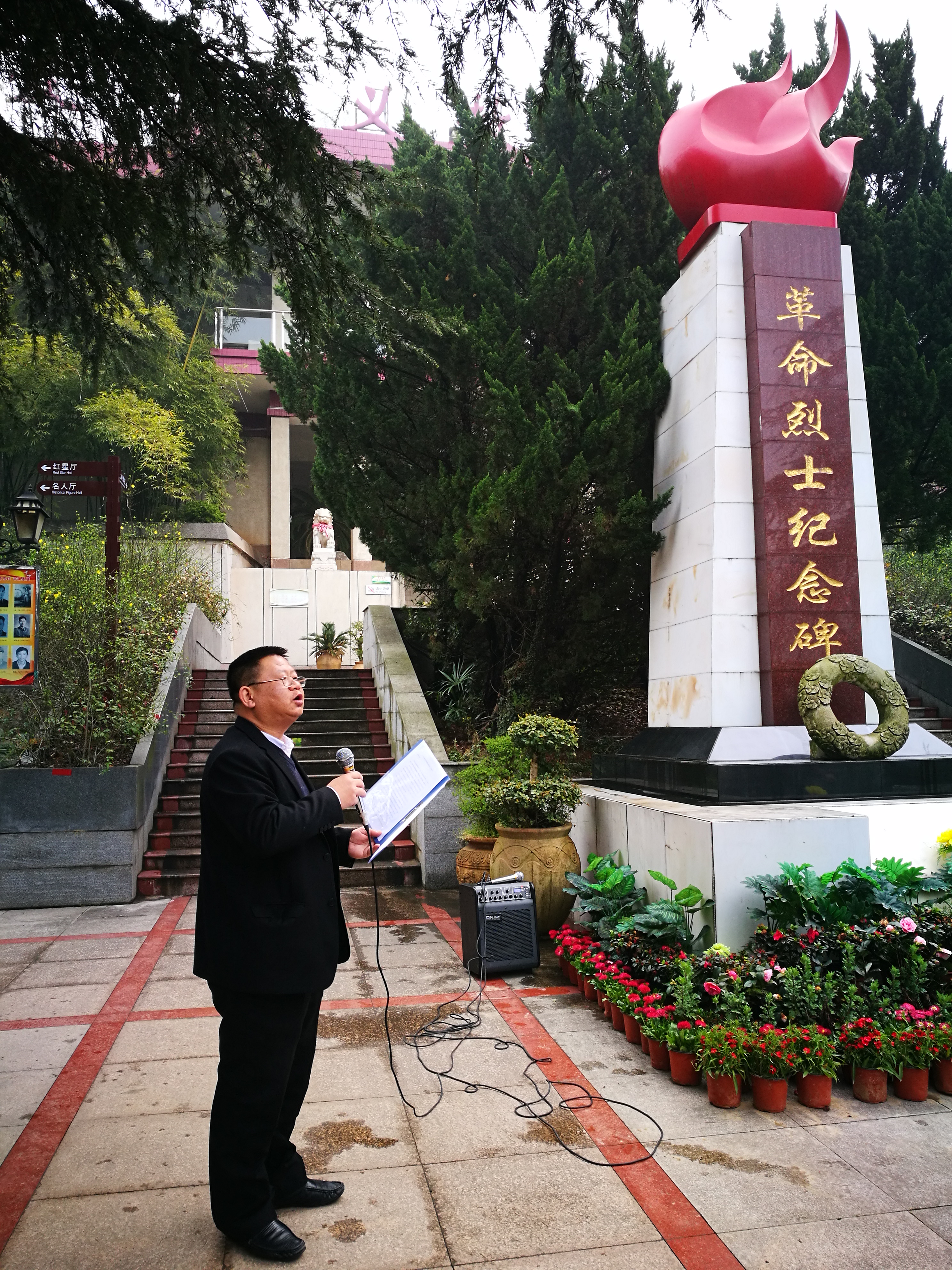 党委副书记袁新华在烈士纪念碑前给大家上了一堂微党课,“今天我们在这里缅怀革命先烈,就是要从他们身上汲取伟大的精神力量,把他们不怕困难、不畏艰险、英勇献身的精神,转化为锐意进取、认真学习、扎实工作的实际行动,”他指出,“我们应牢记并发扬先烈的奋斗以及奉献精神,铭记自己的入党誓词,做出自己应有的贡献。”随后,两名学生党员通过诗朗诵来歌颂烈士的光辉事迹,表达同学们对革命先烈的崇敬与缅怀。