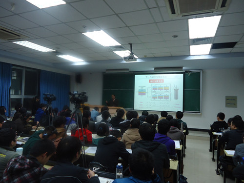 讲座伊始,黄院长为大家带来题为《燃料电池及其关键材料》的精彩报告。报告内容具体可以分为三个部分:第一,新能源汽车与锂离子电池;第二,课题组研究成果展示;第三,如何面对新的挑战。