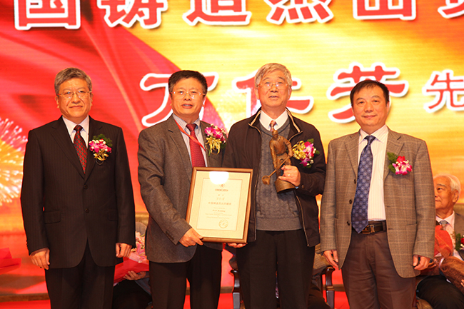 2014年10月26日上午,在“2014中国铸造活动周”上,举行了隆重的第四届“中国铸造终身成就奖”和“中国铸造杰出贡献奖”颁奖典礼。颁奖典礼由中国机械工程学会铸造分会副理事长娄延春主持。在颁奖典礼上,为王文清教授、唐玉林研究员、贾均教授颁发了“中国铸造终身成就奖”奖杯和证书,为曾大本教授、万仁芳先生、唐一林先生颁发了“中国铸造杰出贡献奖”奖杯。颁奖仪式上分别播放了获奖者的获奖视频,嘉宾代表宣读了颁奖词,并为获奖者颁发了奖杯和证书,获奖者分别发表了获奖感言。因贾均教授于10月7日去世,贾均夫人林逸青女士代领了奖杯和证书,并宣读了贾均教授生前所写的获奖感言。