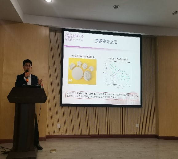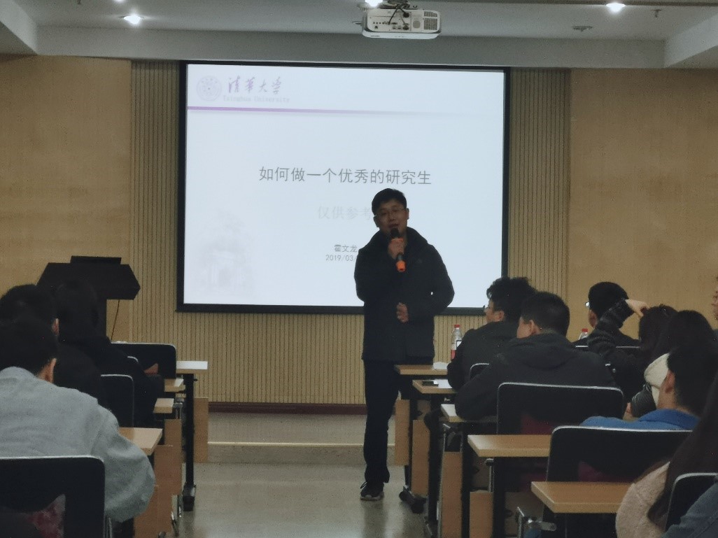 随后,霍文龙博士结合自己的博士生涯,从科研的四大要素——心态、兴趣、方法、投入着手,和同学们分享他对“如何做一名优秀研究生”的一些思考。霍博士告诉同学们任何时候都不要否定自己,保持平和心态,这是科研的基础,做研究是循序渐进过程,需要很长的积累时间,要沉住气。同时,霍博士建议大家研究要早下手,从一个新手到独立开展实验需一点点积累,多读文献,多积累素材,任何实验数据都不要丢弃,及时整理实验数据,积极争取出国交流的机会。