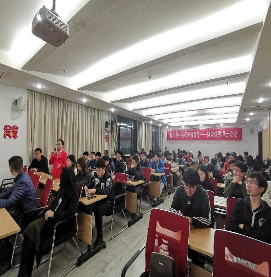19点论坛正式开始,现场座无虚席。党委副书记蒋文海在开场致词中表达了对霍文龙博士的感谢,并重点向前来参加论坛的同学介绍了霍博士丰硕的学术成果,鼓励同学们善于向霍文龙等顶尖博士学习,澳彩