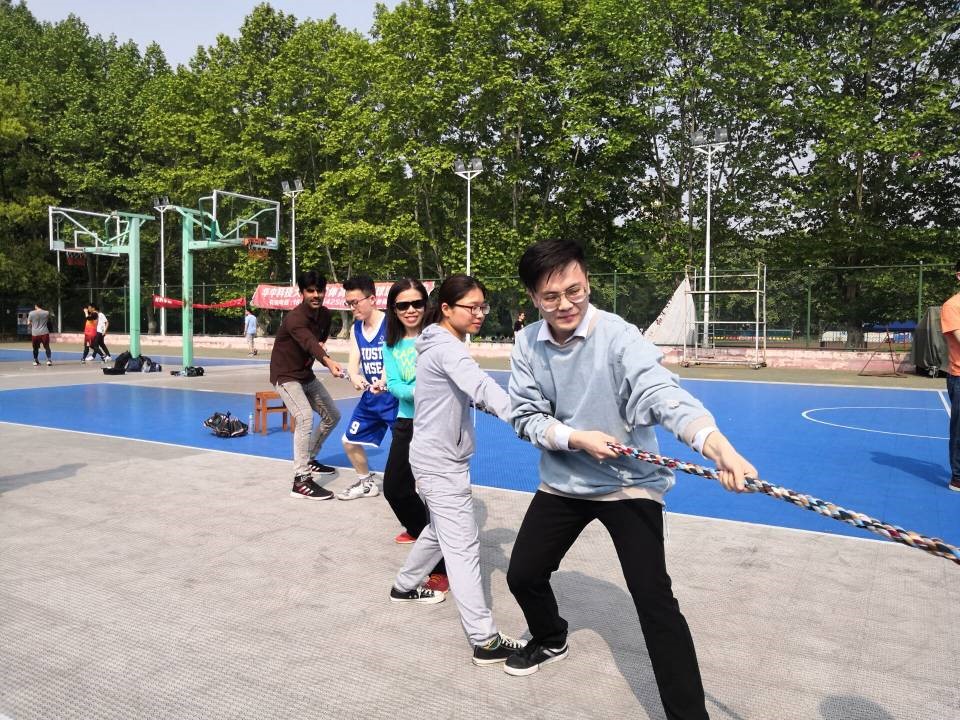 常海欣教授课题组留学生M.Younis也随着参赛队兴致勃勃地参加了“三项拔河”项目。赛场上,处处可见同学老师的笑颜。有的同学为吹气球而涨红了脸,有的同学拼尽浑身解数拔河,努力将红布拉入自己队怀中,有的同学为把羽毛球接入筐中灵活地扭动着腰身。