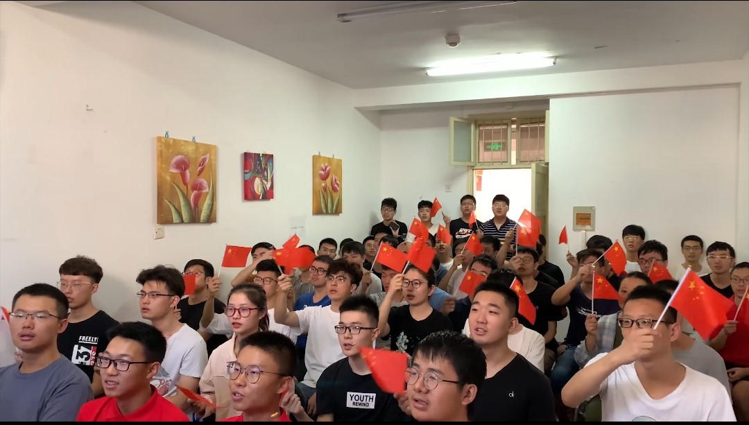 学子通过观看70周年大会、观看《我和我的祖国》影片以及歌唱祖国等形式表达对祖国母亲深沉的爱。