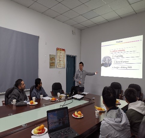 紧接着,柳炜、杨磊、黄鹤鸣和辛集武等四位博士分别从科研进展、研究成果、实践情况等多方面和留学生分享自己的研究生活,给予留学生宝贵建议。连续两年获得全校优秀留学生荣誉称号的李刚同学围绕着自己学习科研生活做分享。他们的精彩展示充分体现了我院优秀学子的风采,同时,他们的宝贵科研经验为我院留学生能够更好地完成学业带来启示,树立信心。
