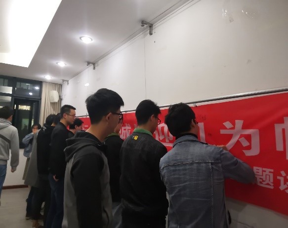 讲座结束时,杨君友院长就赵教授的讲座进行了总结,杨院长鼓励大家在科研求索过程中能大胆探索,勤于动笔,勤于思考,始终以严谨的治学态度努力攻克科研上的每一个难题,永葆初心,在科研路上越走越远。与会全体研究生深受鼓舞,与赵教授、杨院长一起在本次讲座的“学术船行千里,诚信迎风为帆”的横幅上签上自己的名字,来表达自己不忘初心、认真做好科研工作的决心。