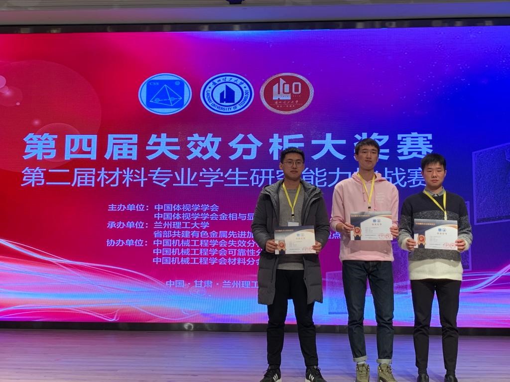 2018级硕士余文康同学和2017级硕士刘伟同学分别以作品《2971Aa011螺旋弹簧断裂失效分析》和《12Cr1MoVG过热器爆管失效分析》双双荣获大奖赛研究生组一等奖,2018级硕士颜文杰同学以《制氧机膨胀叶轮失效分析》的参赛作品荣获大奖赛研究生组二等奖。