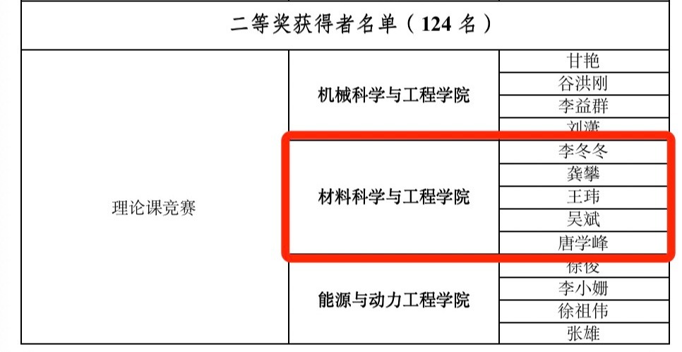 (通讯员 王箫侣)近期,我校组织了2021~2022学年教师教学竞赛,我院李冬冬、龚攀、王玮、吴斌、唐学峰5位教师荣获二等奖,其中,李冬冬、龚攀老师进入决赛。