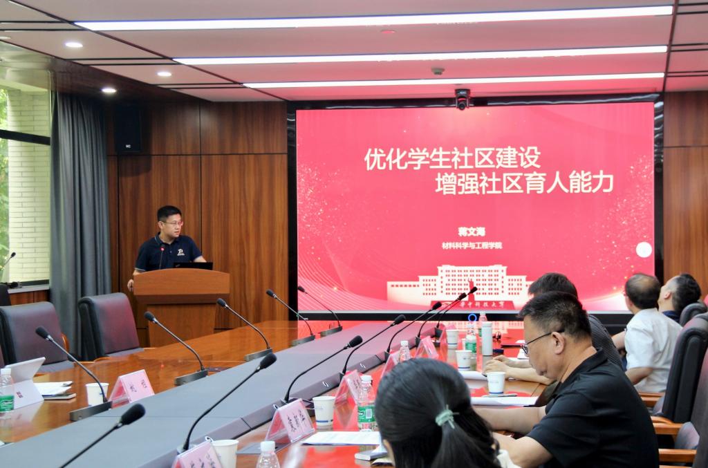 就“优化学生社区建设,增强社区育人能力”专题开展深度调研,组织学生座谈会4场、其他院系交流座谈1场、集体研讨2场。调研提出解决方案并制定工作计划,一是加强党建引领,让党建力量和党建活动走近社区,二是建立学生安全信息网格体系,优化寝室长队伍制度,构建体制机制,三是打造特色社区课程,建设“材料强国”文化墙,加强资源投入,做到“平台育人”“管理育人”“课程育人”。