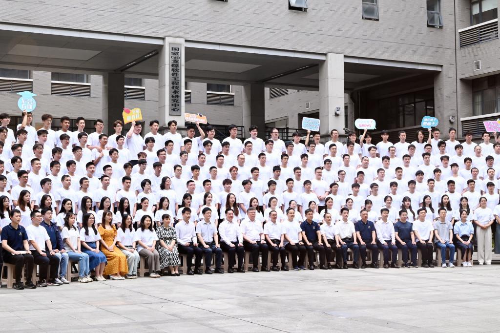 2024届本硕博全体同学在先进制造大楼西楼广场拍摄毕业照,校长尤政院士,原校党委书记、我院教授李元元院士带着对毕业生的祝福到现场与毕业生合影留念, 参加合影的还有澳彩