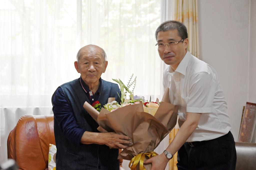 党委书记李冲的陪同下,代表学校看望翟天佑教授,向翟天佑教授团队近年来取得的成绩表示祝贺,他了解团队人才队伍建设和团队实验用房情况,勉励翟天佑教授及团队产出更多高水平成果,继续为学科建设添砖加瓦。