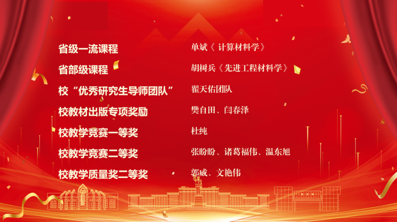 教师坚守教育初心,躬耕教坛,潜心育人,用心用情鼓励学生成长。翟天佑教授团队获校“优秀研究生导师团队”,许恒辉教授获校“十佳青年教工”,翟天佑教授获校“师德先进个人”,单斌教授获校“我最喜爱教师班主任”,蒋文明教授获校“三育人奖”。澳彩