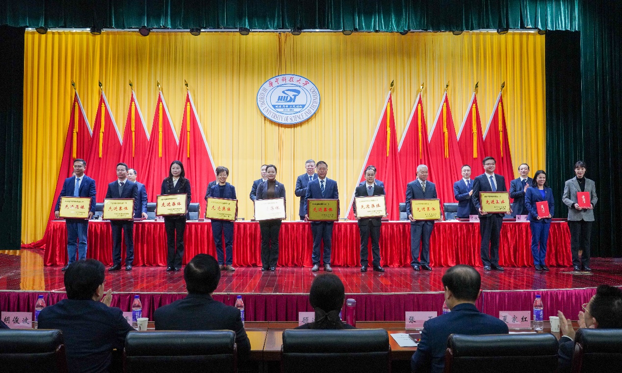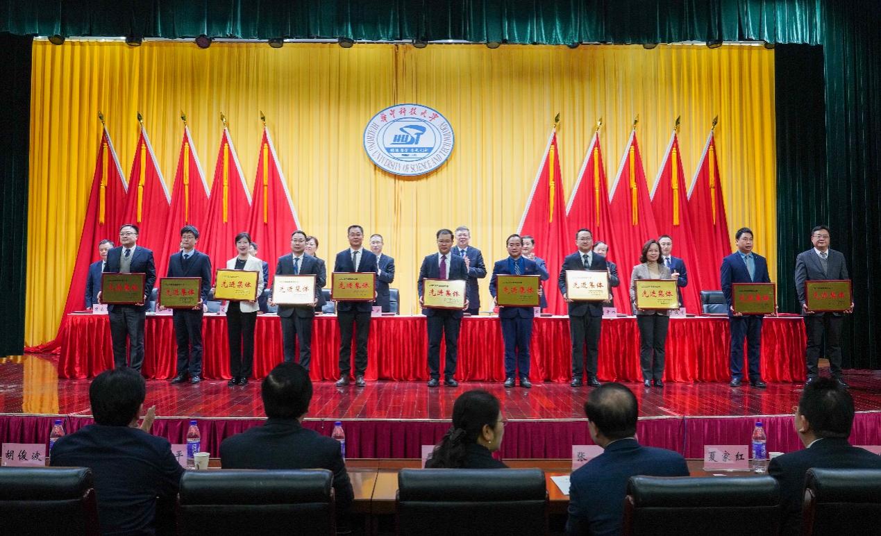 (通讯员 王箫侣)为树立典型、表彰先进,进一步提高教职工干事创业的精气神,3月1日,我校举行2024年度表彰大会。会上对过去一年在教育教学、人事人才、招生宣传、国际交流合作、宣传思想文化、平安校园建设、消防安全管理、信访、保密、离退休、工会等工作中表现突出的先进集体和先进个人进行表彰。全体在校校领导为获奖代表颁奖。