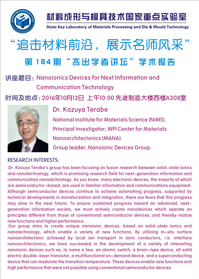 【2016年10月12日上午】第184期“杰出学者讲坛”