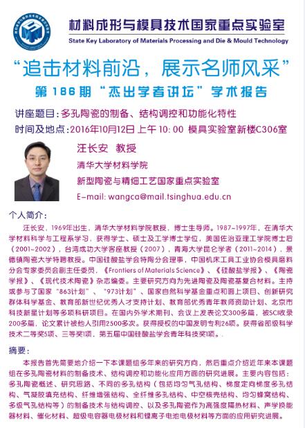 【2016.10.12】第186期“杰出学者讲坛”学术报告