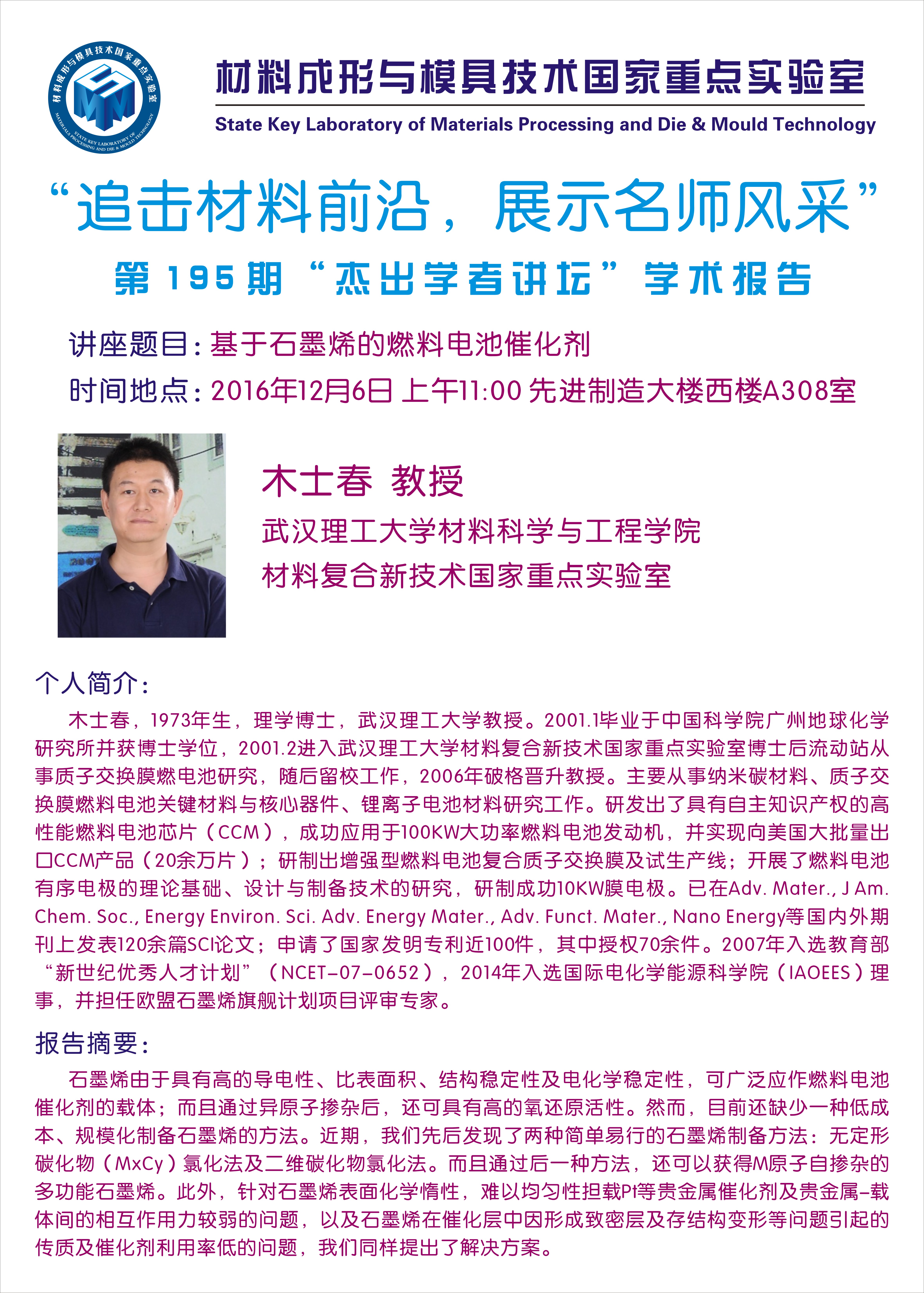 【2016年12月6日】第195期“杰出学者讲坛”学术报告