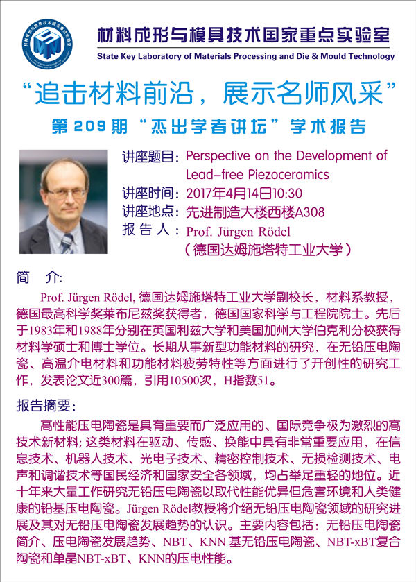 【2017年04月14日】第209期“杰出学者讲坛”学术报告