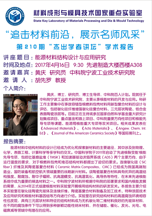 【2017年04月16日】第210期“杰出学者讲坛”学术报告