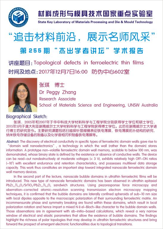 【2017年12月7日】第255期“杰出学者讲坛”学术报告