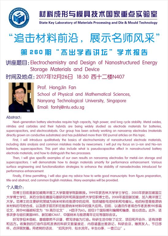 【2017年12月26日】第260期“杰出学者讲坛”学术报告