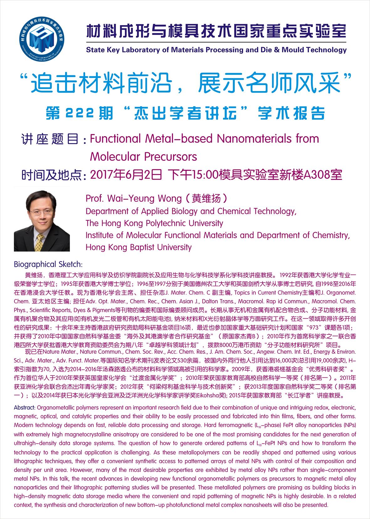 【2017年06月16日】第224期“杰出学者讲坛”学术报告