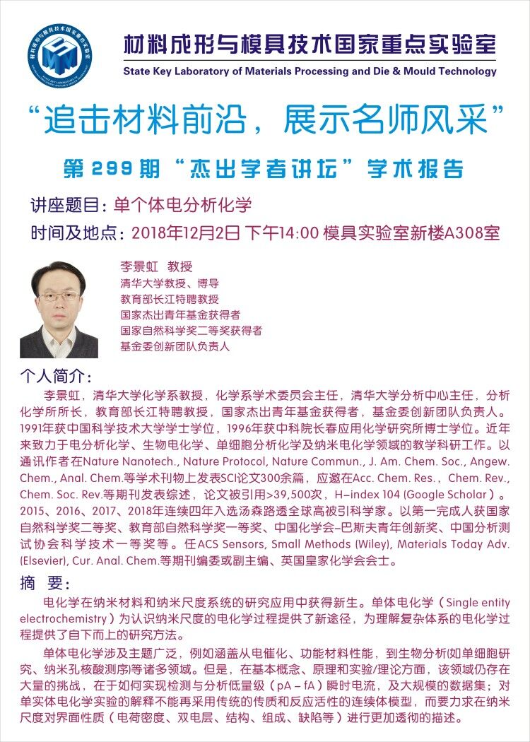 第299期杰出学者讲坛——清华大学李景虹教授
