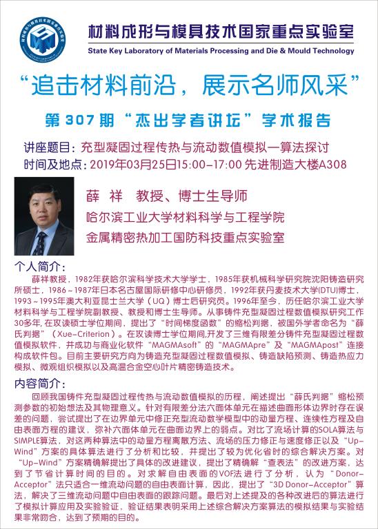 第307期杰出学者讲坛——哈尔滨工业大学薛祥教授