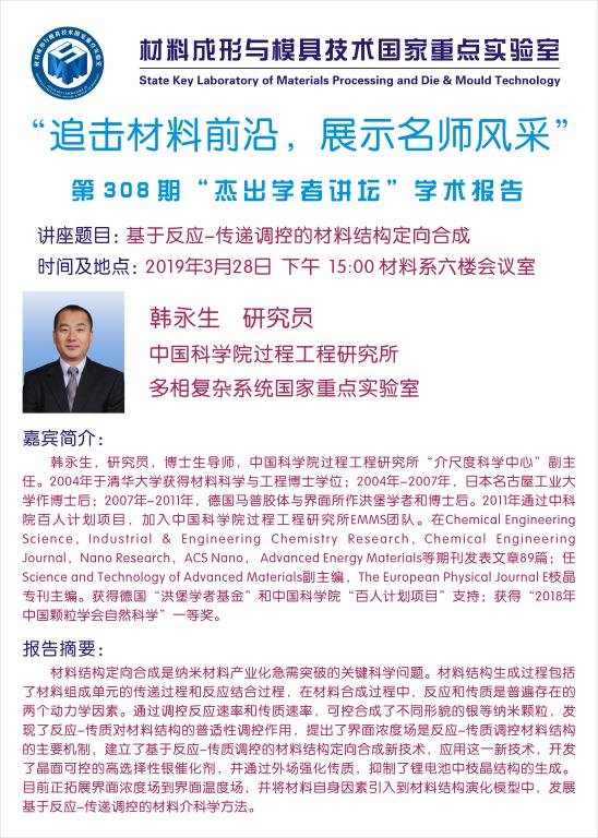 第308期杰出学者讲坛——中国科澳彩 过程工程研究所韩永生研究员