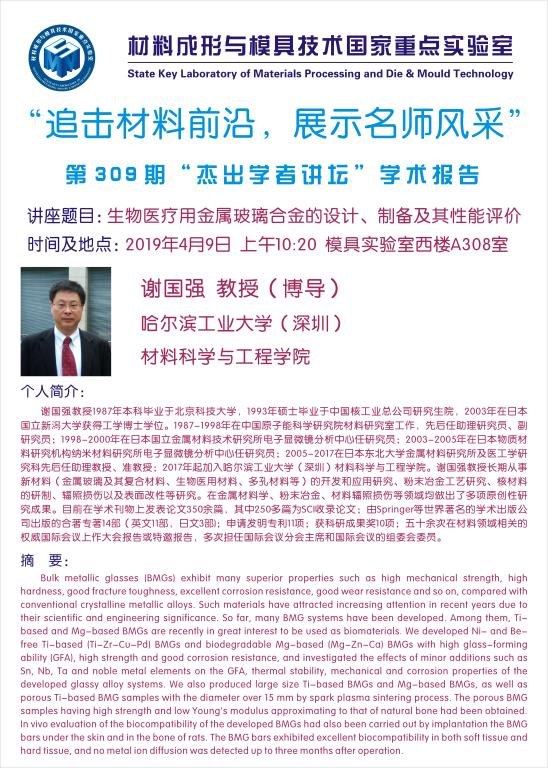第309期杰出学者讲坛——哈尔滨工业大学教授谢国强