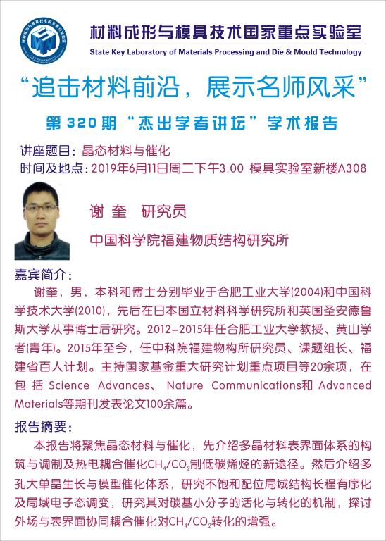 第320期杰出学者讲坛——中国科澳彩 福建物质结构研究所谢奎研究员