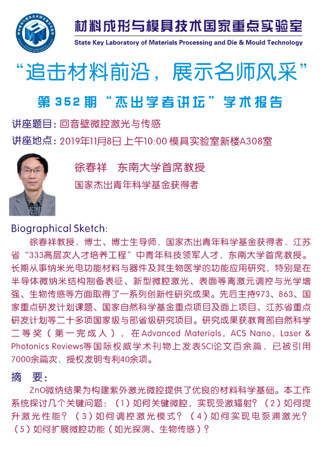 第352期杰出学者讲坛——东南大学教授徐春祥