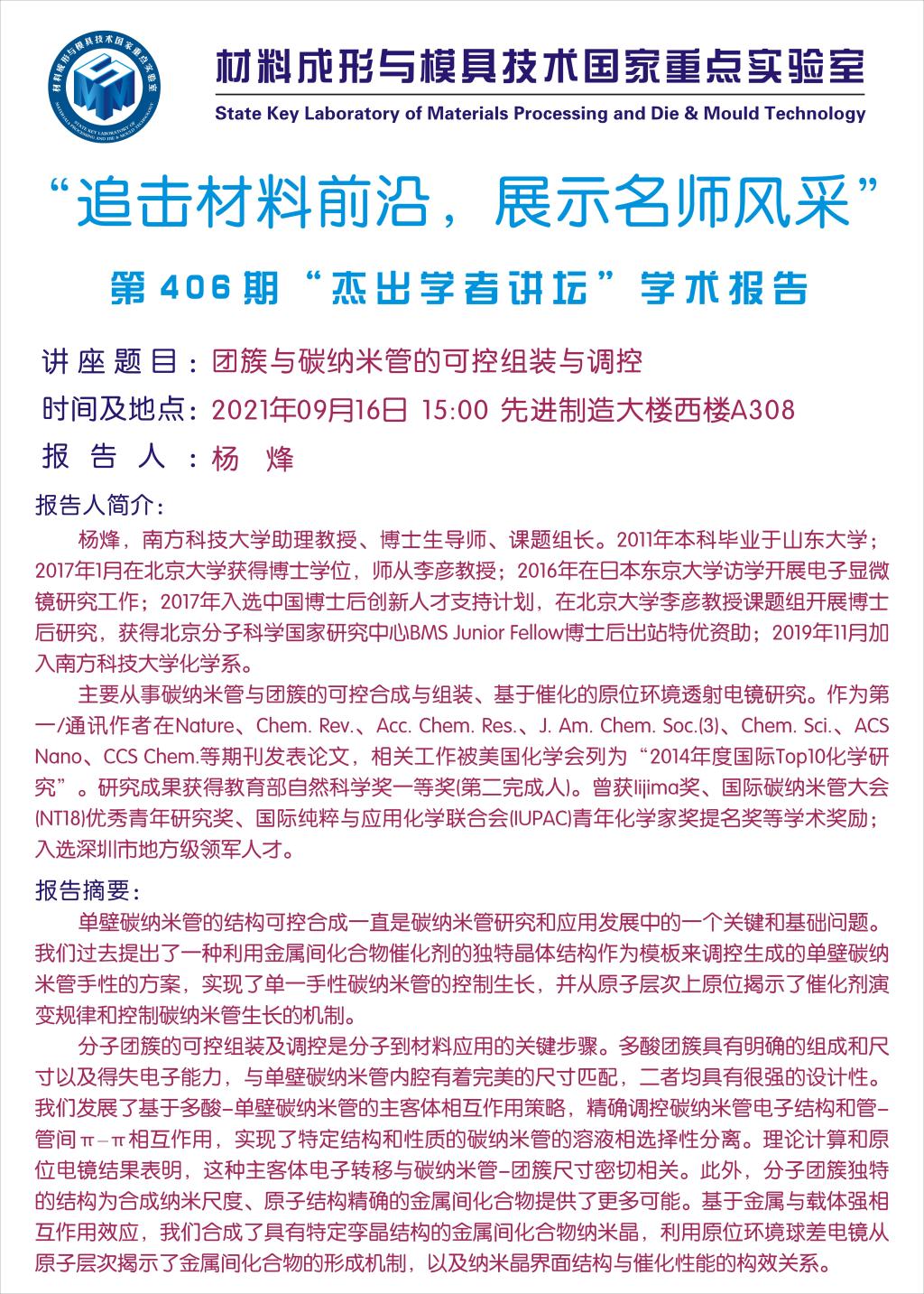 第406期杰出学者讲坛——南方科技大学助理教授杨烽