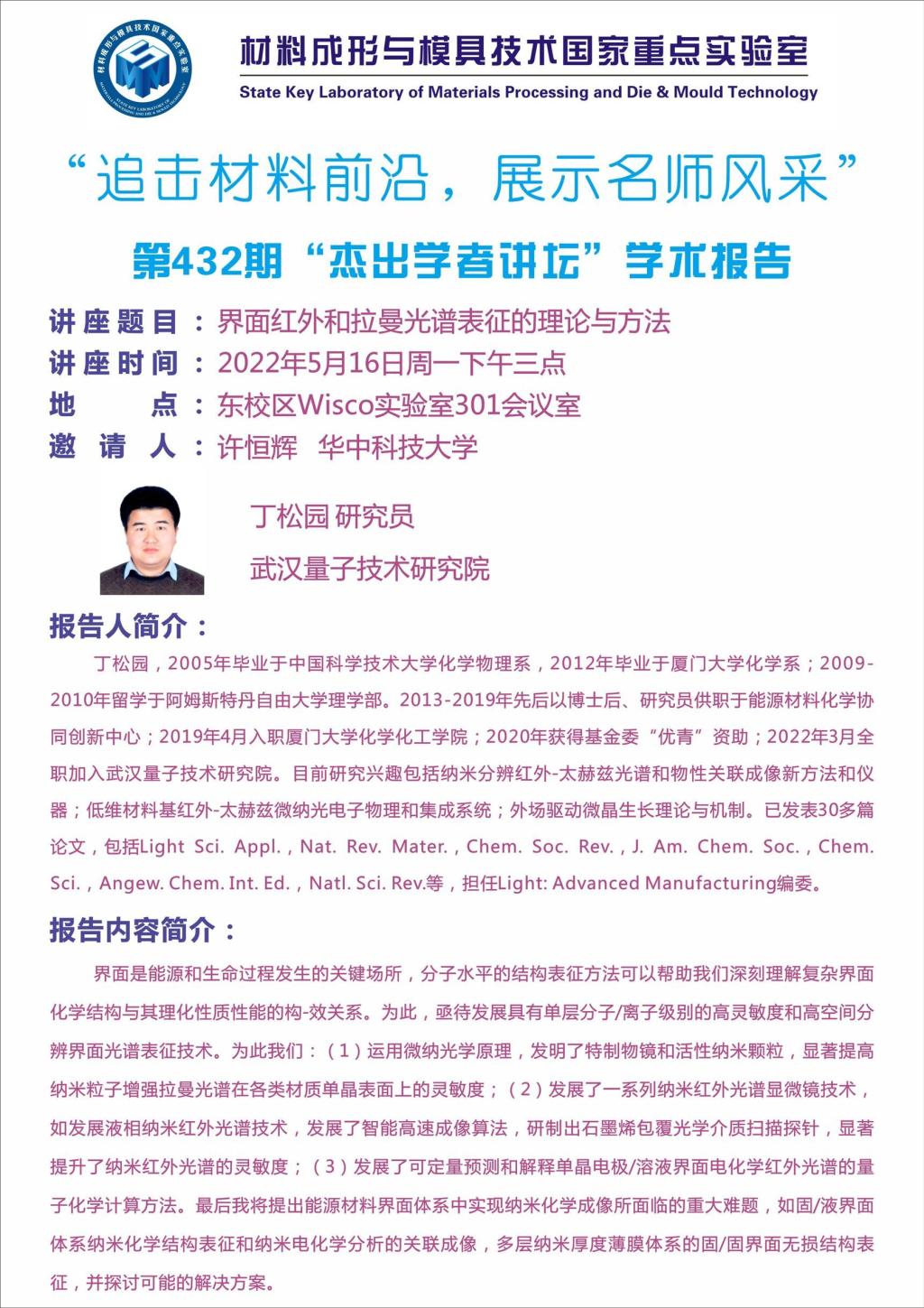 2022年5月16日"杰出学者”讲坛:界面红外和拉曼光谱表征的理论与方法