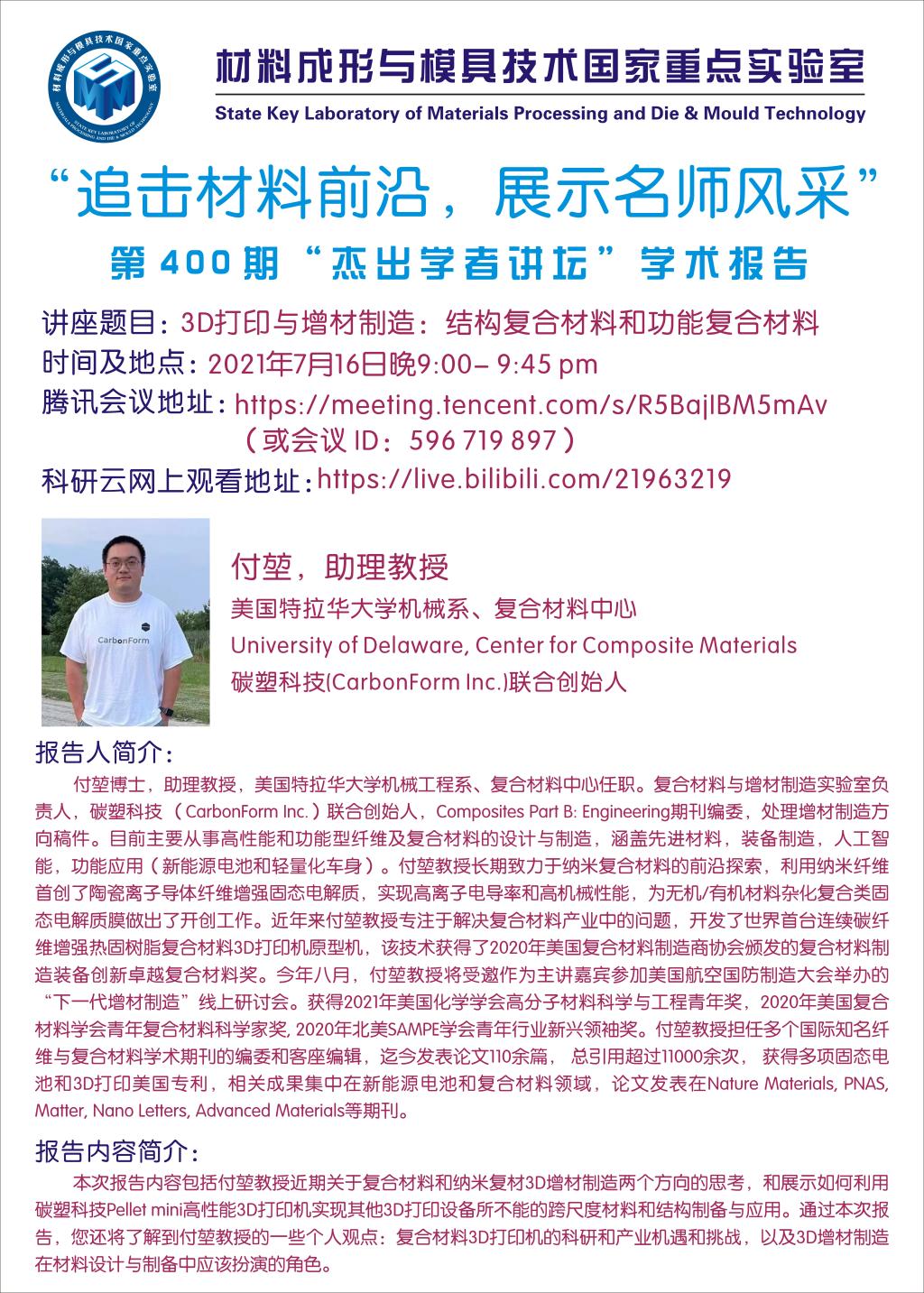 第400期杰出学者讲坛——美国特拉华大学助理教授付堃