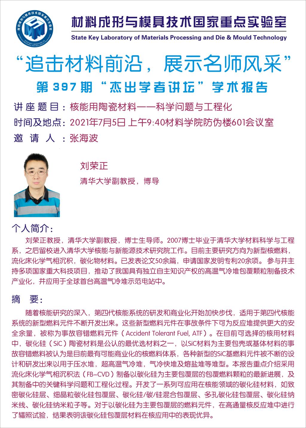 第397期杰出学者讲坛——清华大学副教授刘荣正