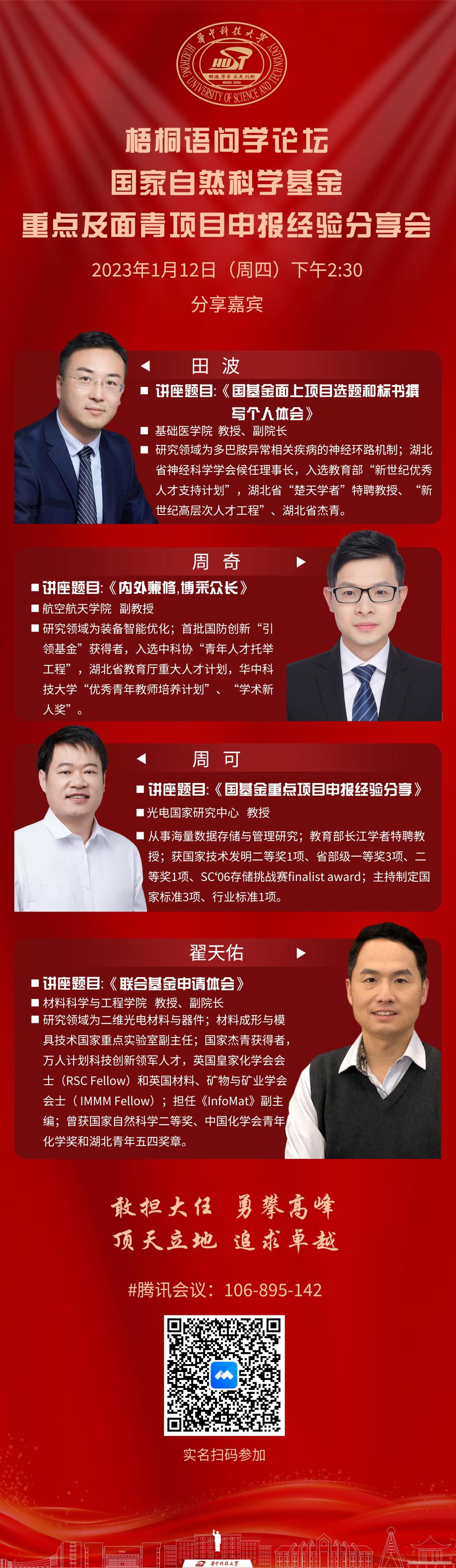 梧桐语问学论坛-国家自然科学基金重点及面青项目申报经验分享会