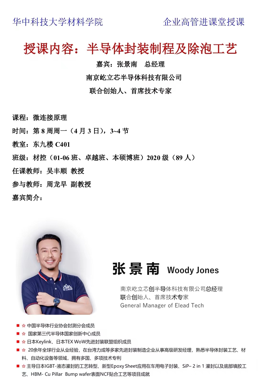 企业高管进课堂授课:半导体封装制程及除泡工艺