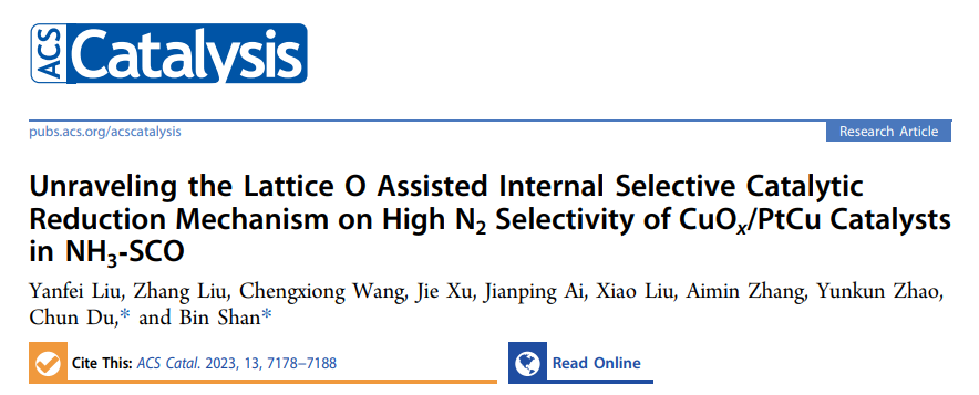 文献链接:Unraveling the Lattice O Assisted Internal Selective Catalytic Reduction Mechanism on High N2 Selectivity of CuOx/PtCu Catalysts in NH3-SCO