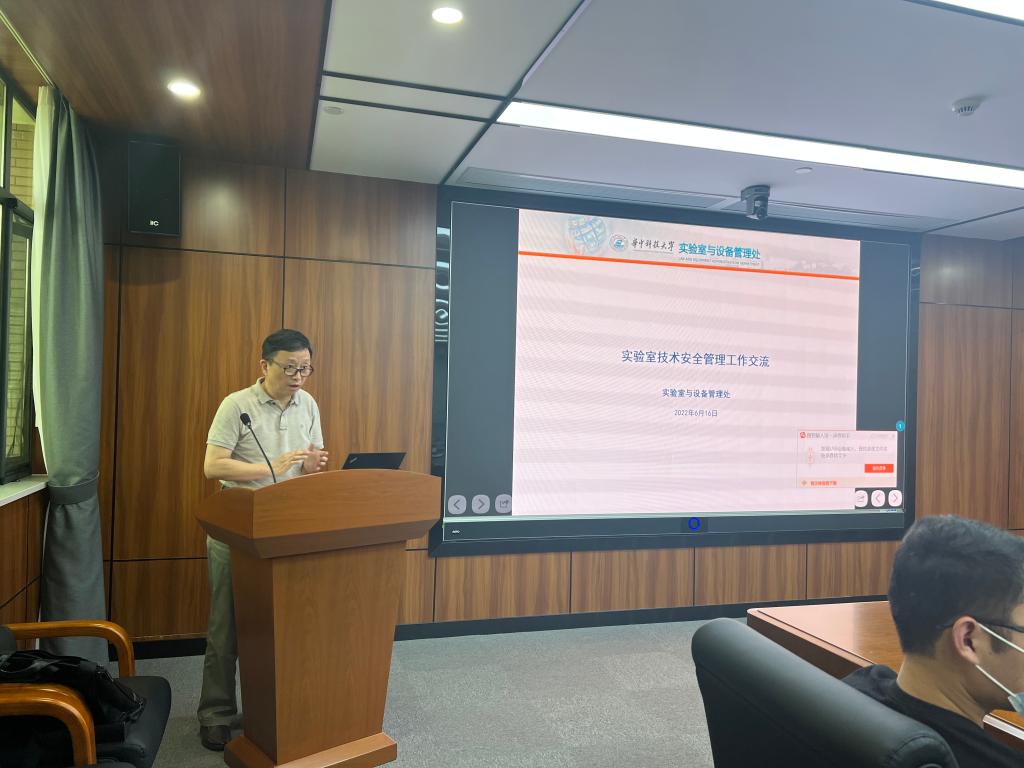 毛勇杰副处长以实验室安全的“三大一重”(伤害大、影响大、责任大、担子重)作实验室技术安全管理工作交流,重点介绍学校出台的《华中科技大学实验室技术安全工作责任追究办法(试行)》管理规定。
