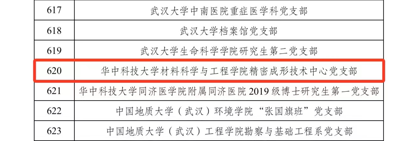 精密成形技术中心党支部现有中共党员21名(含中共预备党员1名),近五年新入职的青年教师100%发展入党。2021年获评湖北省高等学校先进基层党组织,支部书记被评为华中科技大学优秀党务工作者。