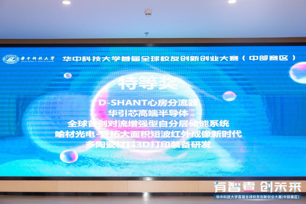 2022年6月28日-29日,华中科技大学首届全球校友会创新创业大赛(中部赛区)复赛在洪山人工智能大厦举行。来自“人工智能、智能制造、医疗健康、新能源、新材料、集成电路”等领域的48个优质项目进行了激烈的角逐,最终“D-SHANT心房分流器、华引芯高端半导体、全球首创对流增强型自分层储能系统、喻材光电大面积短波红外成像、多陶瓷材料3D打印装备研发”5个项目荣获了特等奖。武汉市洪山区人民政府副区长戴意涛、武汉市科学技术局副局长王振旭、华中科技大学副校长梁茜等各位专家领导莅临指导。