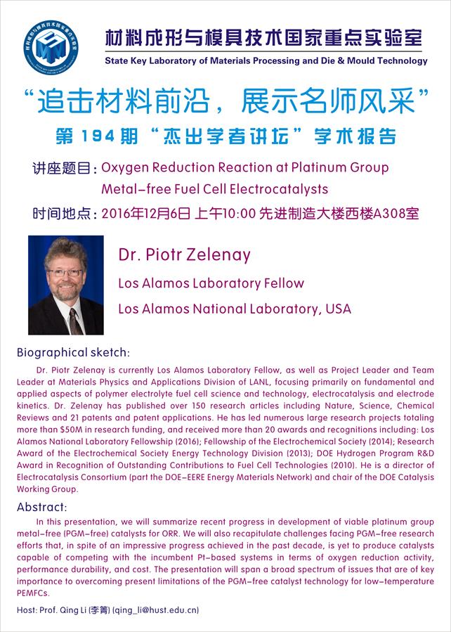 【2016年12月6日】第195期“杰出学者讲坛”学术报告