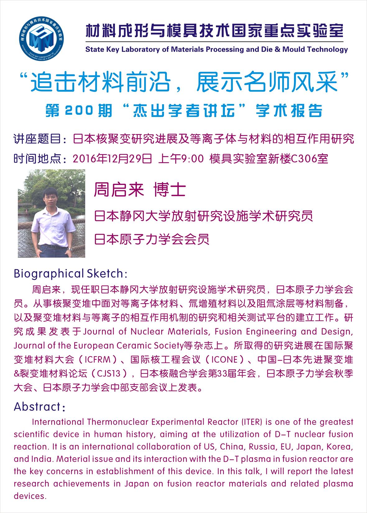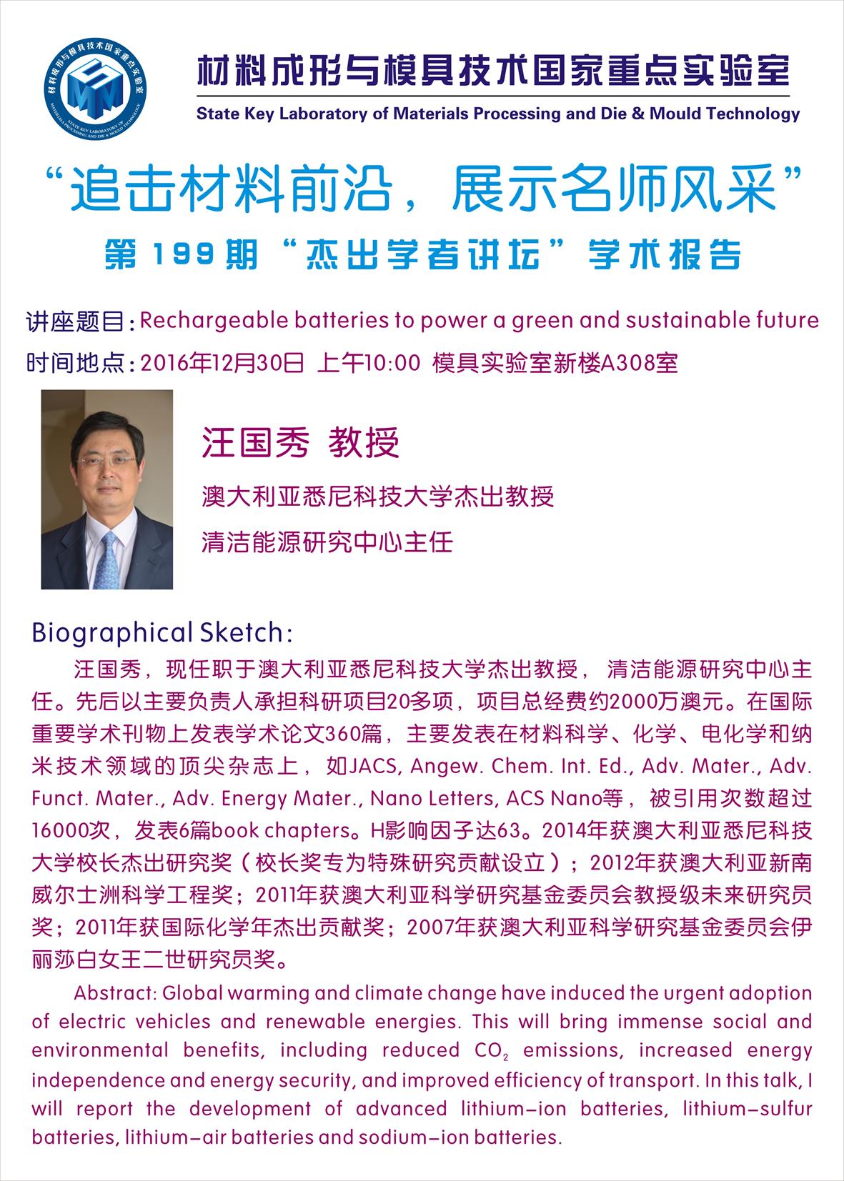 【2016年12月30日】第199期“杰出学者讲坛”学术报…