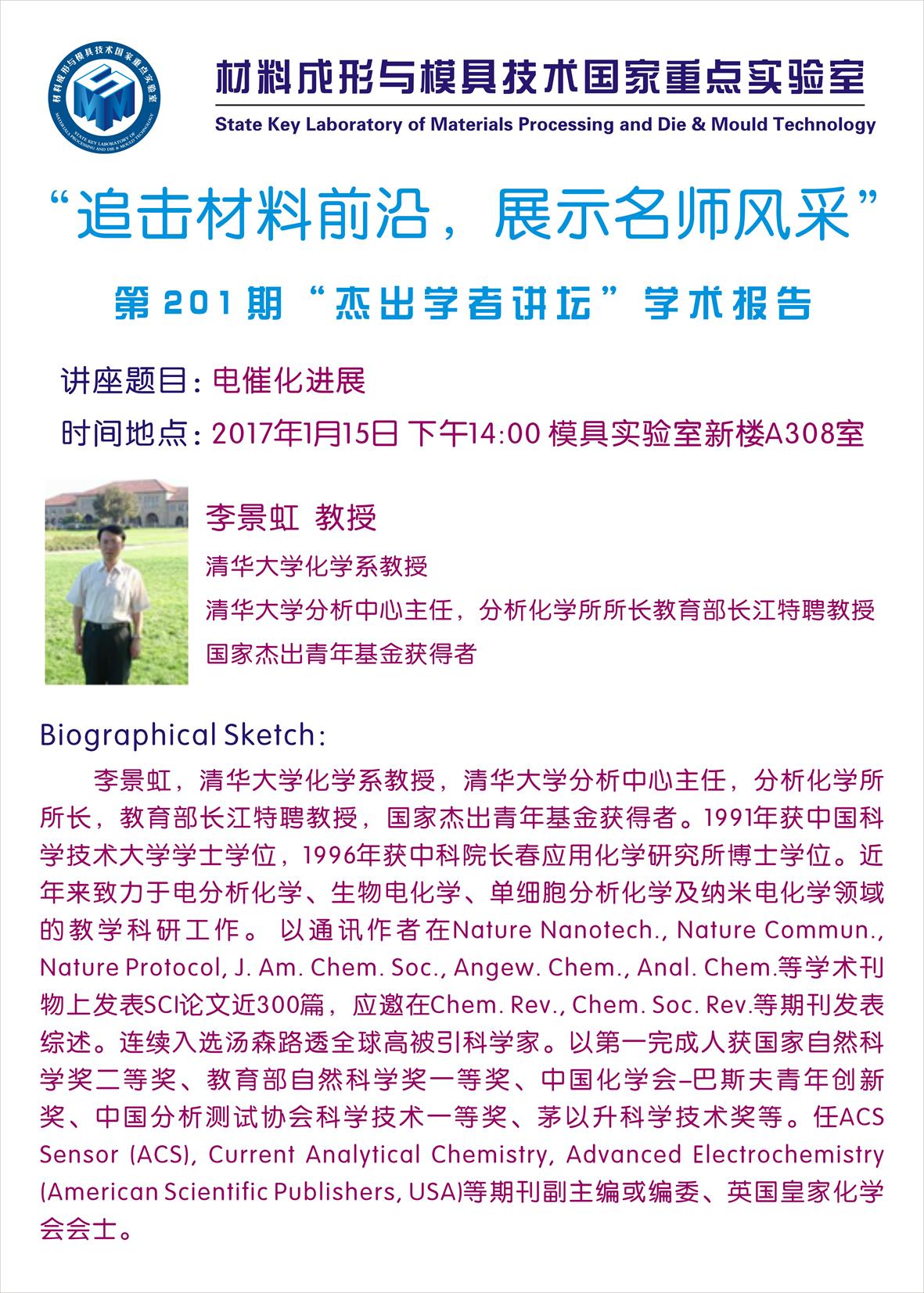 【2017年01月15日】第201期“杰出学者讲坛”学术报…