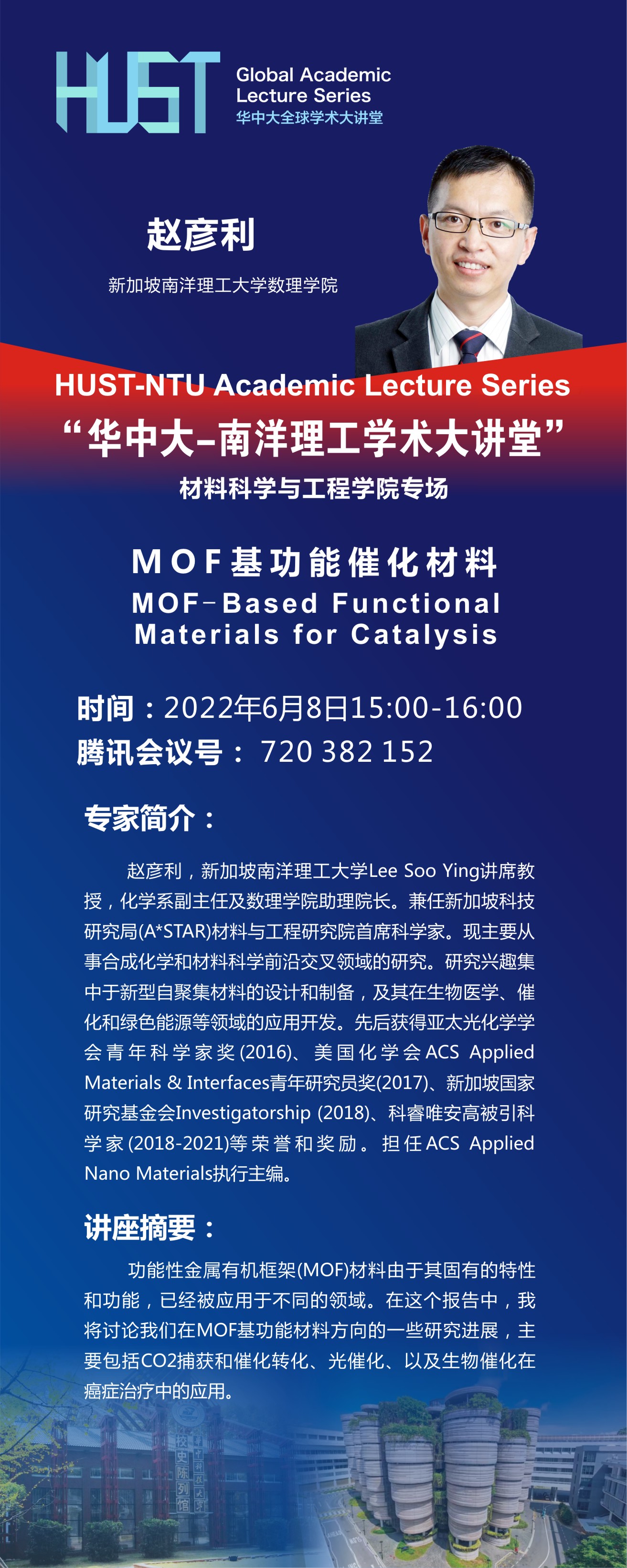 2022年6月8日“华中大-南洋理工学术大讲堂”:MOF基功能催化材料