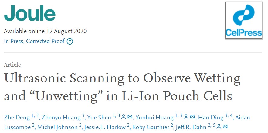 近日,国际著名能源杂志Joule(Cell子刊)刊发了我院黄云辉/沈越团队与加拿大达尔豪斯大学Jeff. R. Dahn合作研究成果:Ultrasonic Scanning to Observe Wetting and “Un…