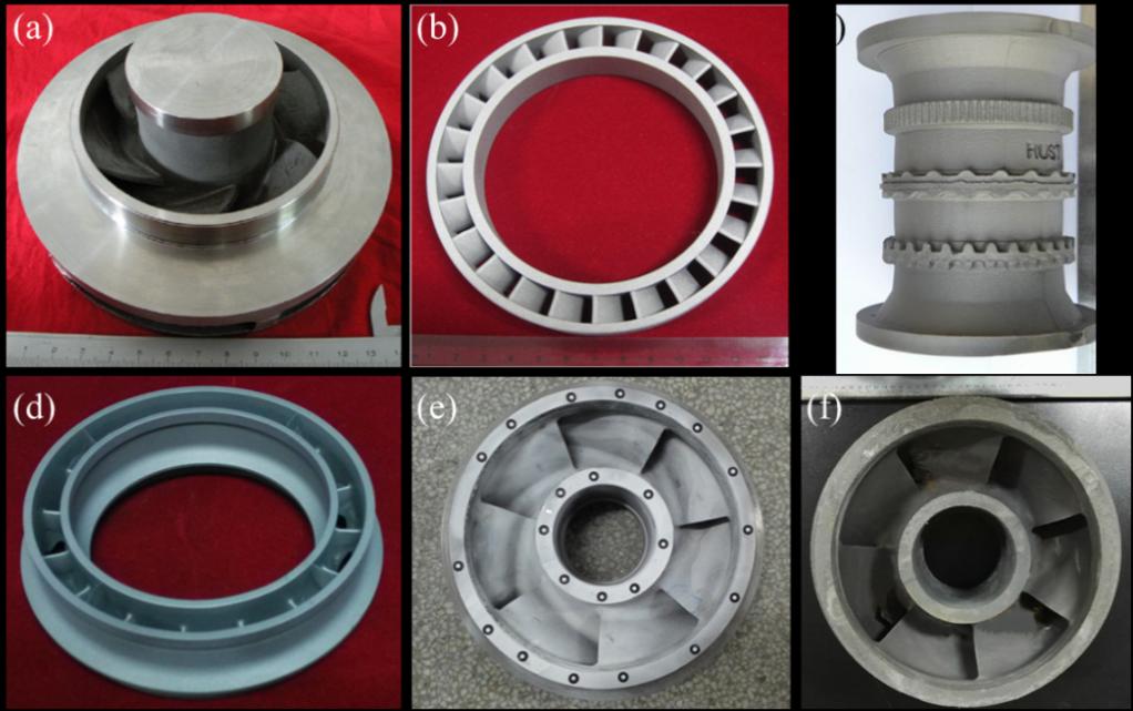 图8 热等静压技术成形的典型零件:(a) Inconel 625涡轮盘;(b) TC4叶盘;(c-d) TC4机匣;(e) TC4涡轮盘;(f) FGH97涡轮盘