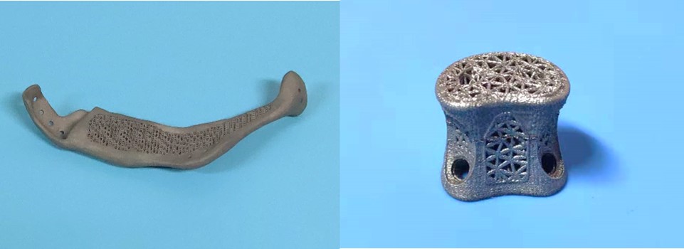 图3 生物活性钛合金植入体应用(下颌骨;脊椎骨)