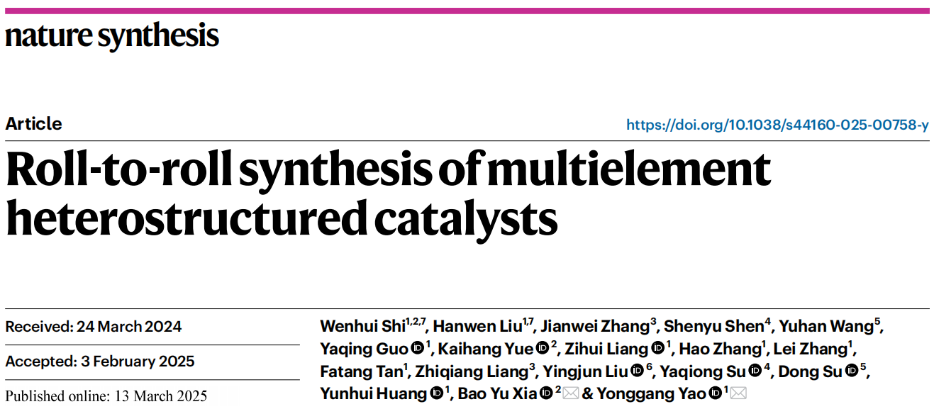 (通讯员 石文辉)2025年3月13日,澳彩-澳门六合彩官网 姚永刚教授与化学与化工澳彩 夏宝玉教授合作在Nature Synthesis期刊上发表了一篇题为“Roll-to-roll syn…